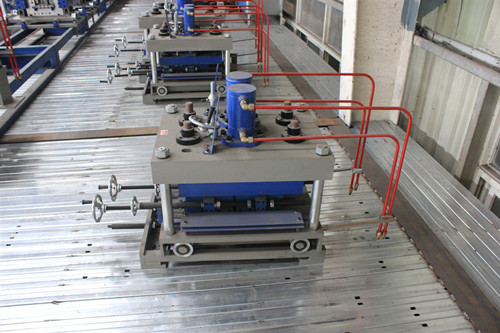 Cada una de nuestras máquinas de correas tiene una guía de alimentación de material con dos rodillos (uno hacia arriba y otro hacia abajo) y un dispositivo nivelador con 5 rodillos (2 hacia arriba y 3 hacia abajo) para enderezar.