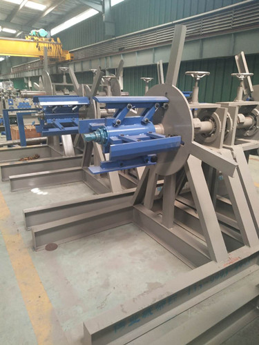 Un juego de desenrollador manual, sin alimentación, que controla manualmente la contracción y el tope del orificio interior de la bobina de acero.