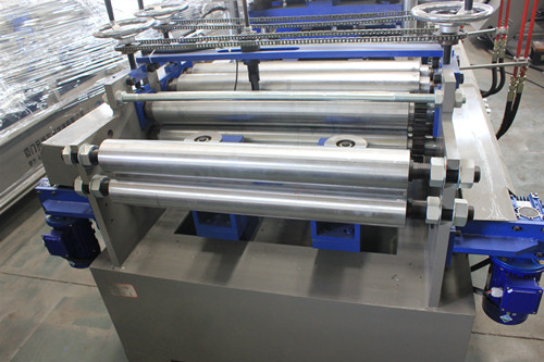 Dos rodillos (uno superior y otro inferior) para guiar el material y 5 rodillos (2 superiores y 3 inferiores) para enderezar.